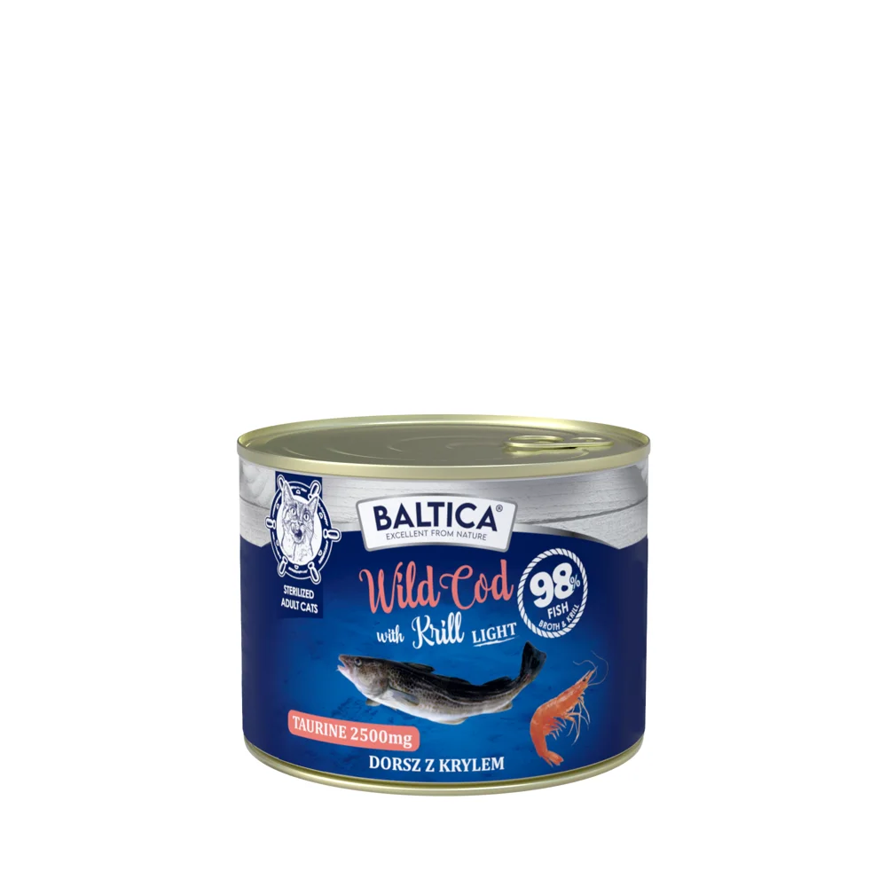 BALTICA Excellent Wild Cod with Krill Light 185g karma mokra dla kotów o obniżonej zawartości tłuszczu