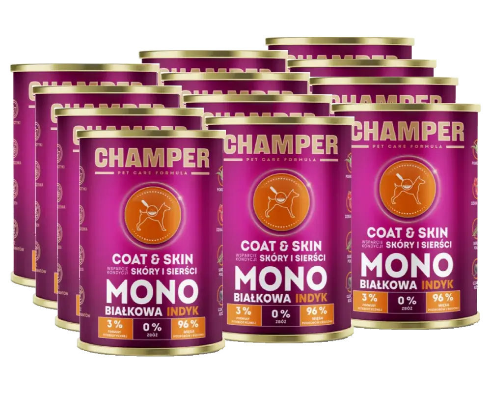 CHAMPER Coat&Skin Monobiałkowa Indyk 12x400g karma mokra dla psów dorosłych