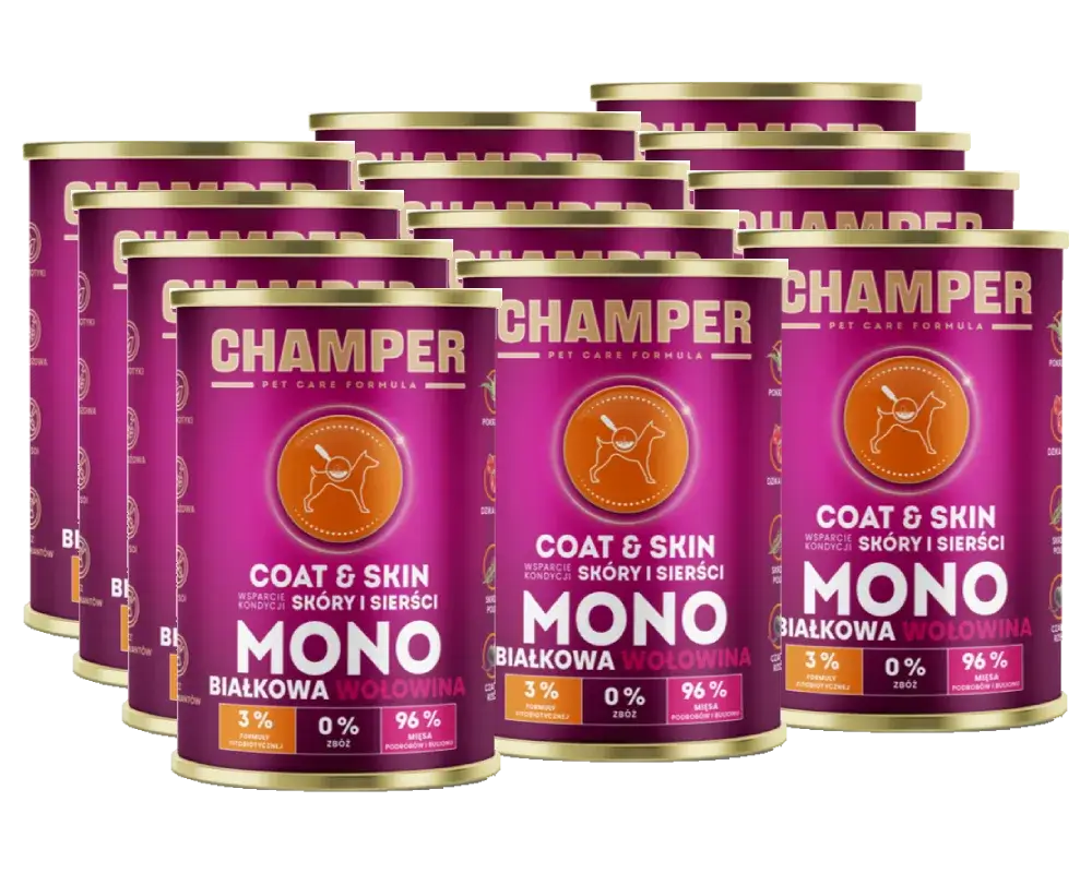 CHAMPER Coat&Skin Monobiałkowa Wołowina 12x400g karma mokra dla psów dorosłych