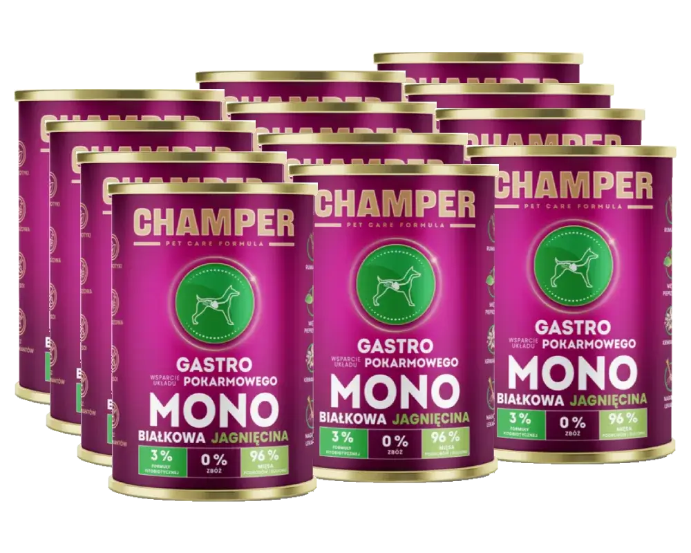 CHAMPER Gastro Monobiałkowa Jagnięcina 12x400g karma mokra dla psów dorosłych