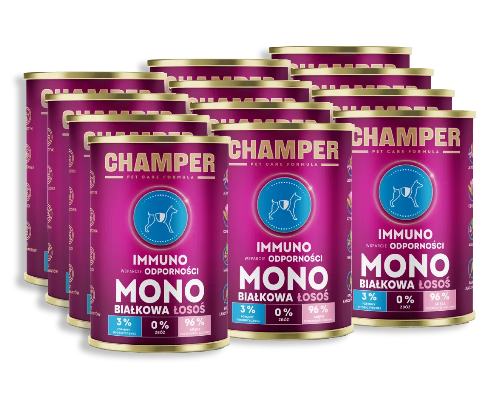 CHAMPER Immuno Monobiałkowa Łosoś 12x400g karma mokra dla psów dorosłych
