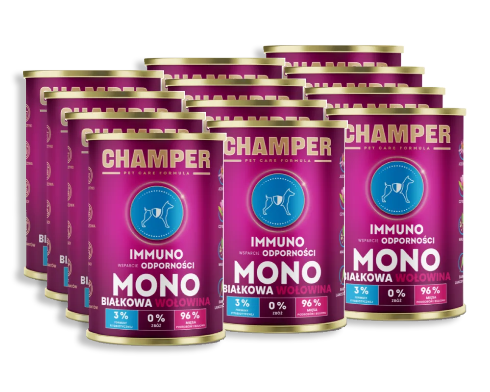 CHAMPER Immuno Monobiałkowa Wołowina 12x400g karma mokra dla psów dorosłych