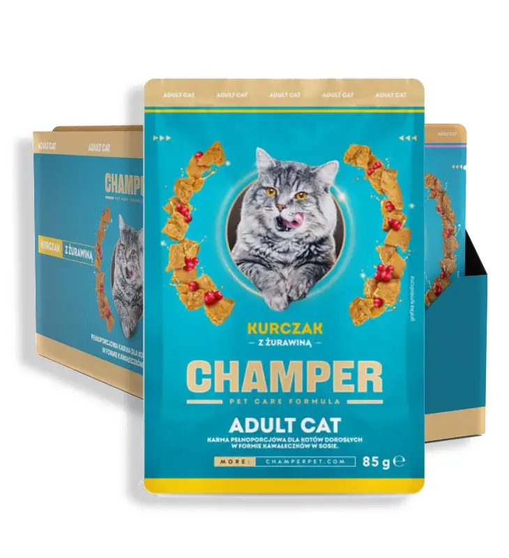 CHAMPER Kot kurczak z żurawiną w sosie 12x85g karma mokra dla kotów dorosłych