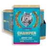 CHAMPER PET CARE FORMULA saszetki dla kotów stanowią połączenie wartościowego mięsa, wyjątkowego smaku i uwielbianej przez koty konsystencji.