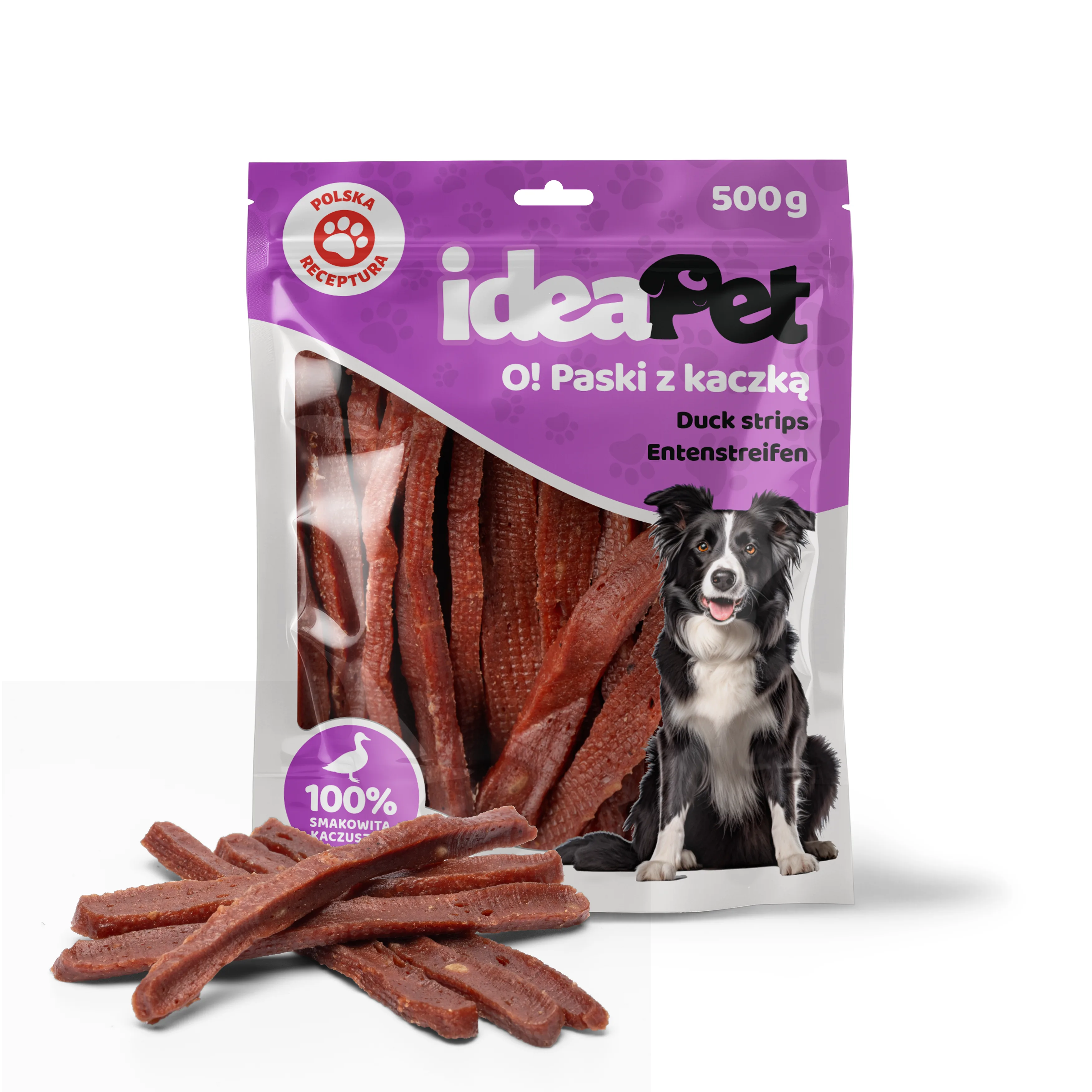 Przysmak dla psa IdeaPet Paski z kaczką zawiera aż 85% mięsa z kaczki, co czyni go smaczną i bogatą w białko przekąską wspierającą zdrowy rozwój mięśni. Dzięki naturalnym składnikom i niskiej zawartości tłuszczu jest to zdrowa opcja, idealna jako nagroda podczas treningu lub przekąska między posiłkami. Miękka konsystencja sprawia, że przysmak jest łatwy do przeżucia, odpowiedni zarówno dla młodszych, jak i starszych psów.