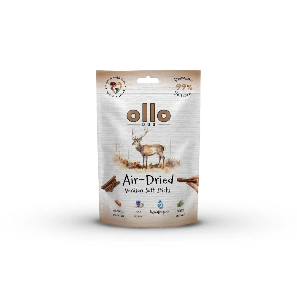 Przysmaki dla psa Ollo Air-Dried Training Venison Soft Cubes to naturalne, hipoalergiczne, monobiałkowe smaczki z jelenia. Są delikatnie suszone powietrzem. W kształcie kostek o wymiarach ok 10 mm. W 100% naturalny produkt, stworzony z myślą o psach wszystkich ras i w każdym wieku. Są miękkie i monobiałkowe, co jest niezwykle istotne dla psów z alergiami pokarmowymi oraz tych z wrażliwym żołądkiem.