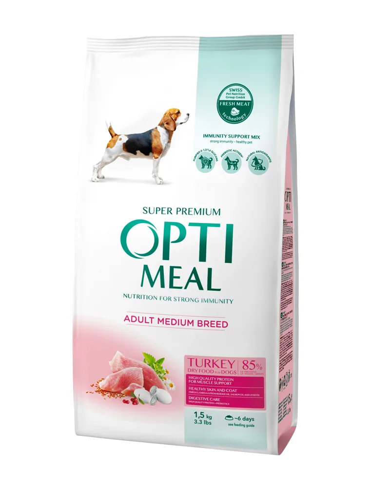 OPTIMEAL Super Premium pełnoporcjowa sucha karma dla psów średnich ras – Indyk 1,5 kg