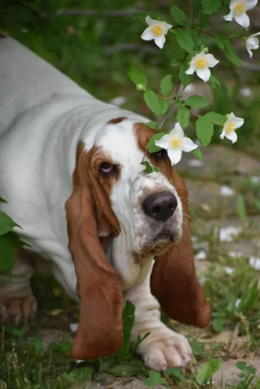 Jedną z najbardziej rozpoznawalnych cech basseta są jego długie, opadające uszy, które podczas chodzenia niemal zamiatają po ziemi. Służą one nie tylko wyglądowi – pomagają kierować zapachy w stronę nosa. Oczy mają melancholijny, łagodny wyraz, a duży, czarny nos podkreśla niezwykłe zdolności węchowe psa.